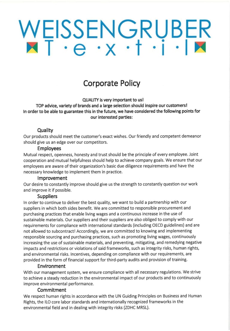 We at Weissengruber Textil have tried to reflect this as accurately as possible in our sustainability report and are constantly improving our performance.