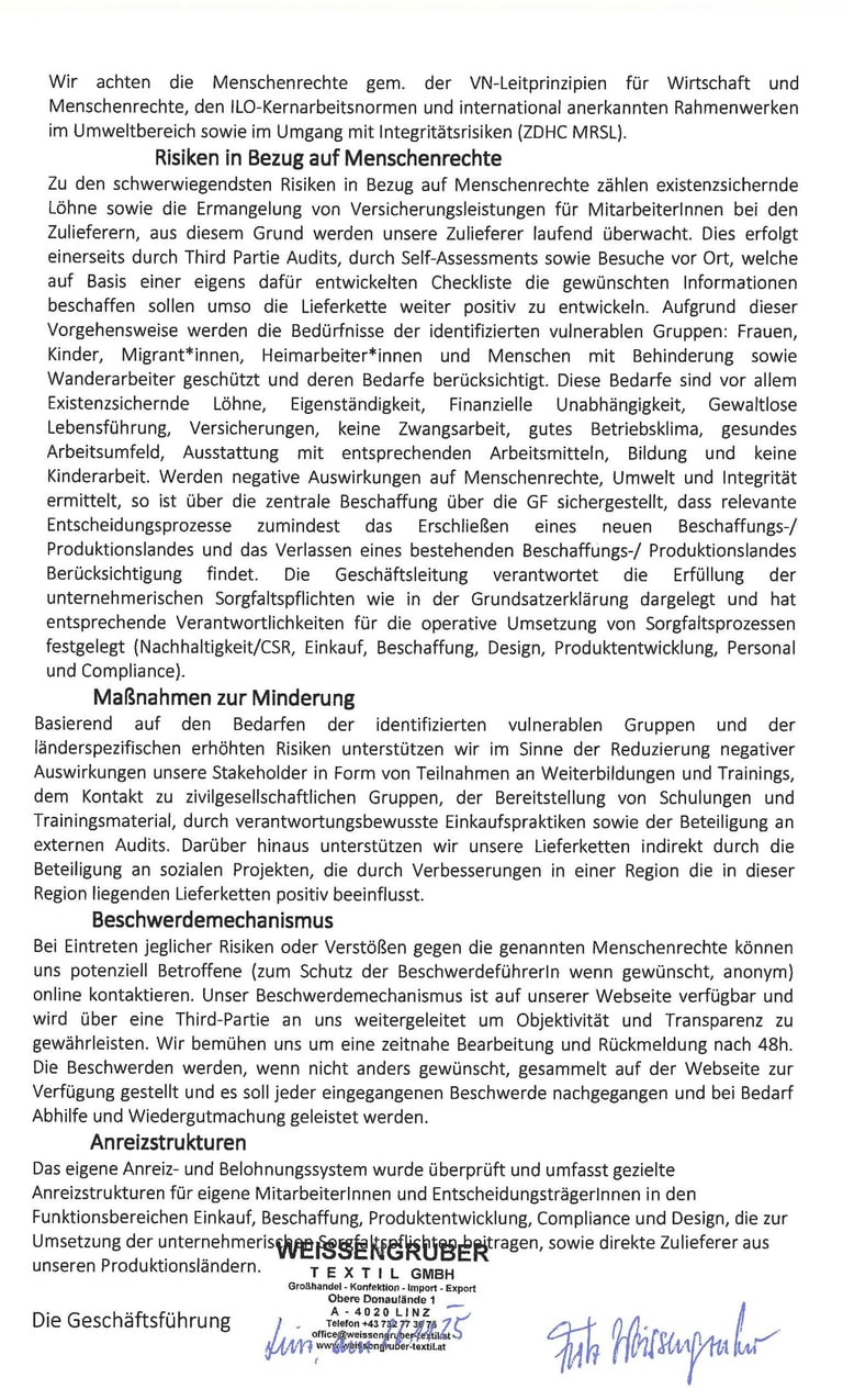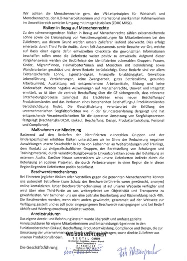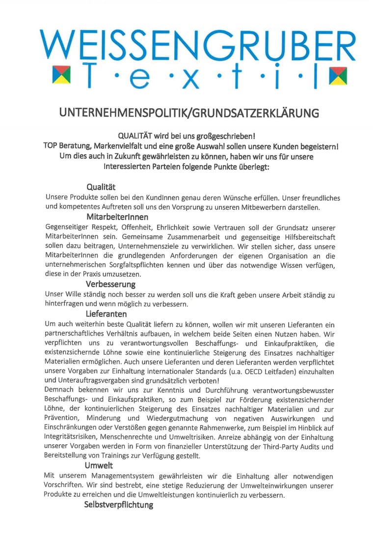 Wir von Weissengruber Textil haben in unserem Nachhaltigkeitsbericht versucht diese Umstände so getreu wie möglich abzubilden und sind stetig dabei unsere Performance zu verbessern.